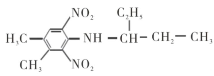 二甲戊靈屬二硝基苯胺類除草劑,分子式為 C13H19N3O4,分子量為 281.3,純品為橙黃色結晶體。主要抑制分生組織細胞分裂,不影響雜草種子萌發,而是在雜草種子萌發過程中幼芽、莖和根吸收藥劑后起作用。
